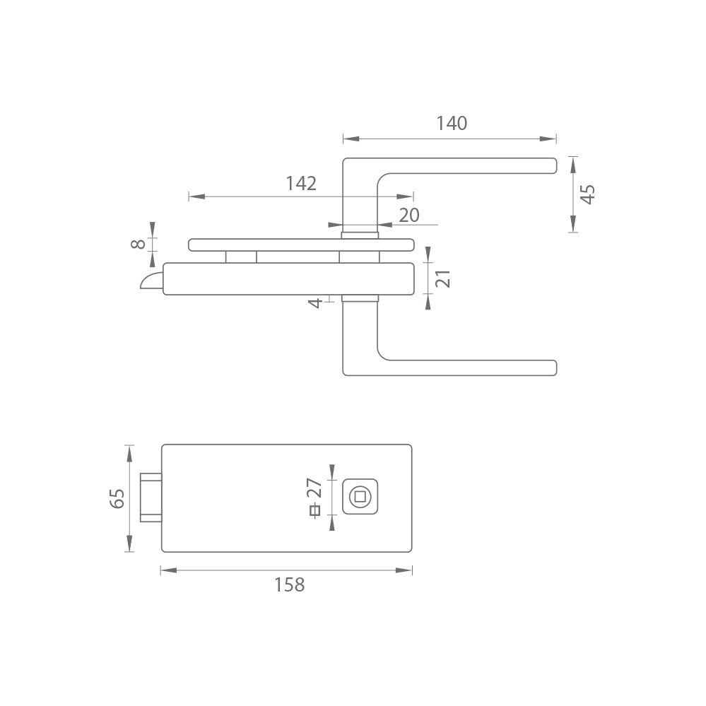 Die Öffnung für den Griff enthält einen begrenzenden Mechanismus für die maximale Beseitigung des Platzes des Quadrats. Mit dem Sperrmechanismus können Sie die Federkraft einstellen und hilft, den Griff in einer horizontalen Position zu halten.