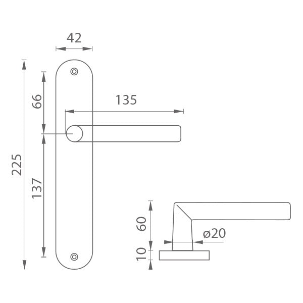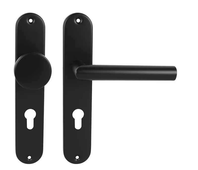 Der Schildgriff an der Innentür mit einem ovalen Schild besteht aus hochwertigem Edelstahl, bekannt als Edelstahl, und wird oberflächen behandelt. Der ovale Schild misst 42 mm x 225 mm.