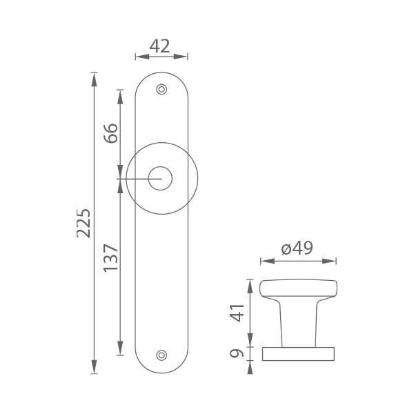 Die Tür gerade repariert Knauf Auf dem ovalen Schild besteht aus hochwertigem Edelstahl, der als Edelstahl bekannt ist und oberflächen behandelt wird. Der Knauf hat einen Durchmesser von 49 mm und der Schild misst 42 mm x 225 mm.