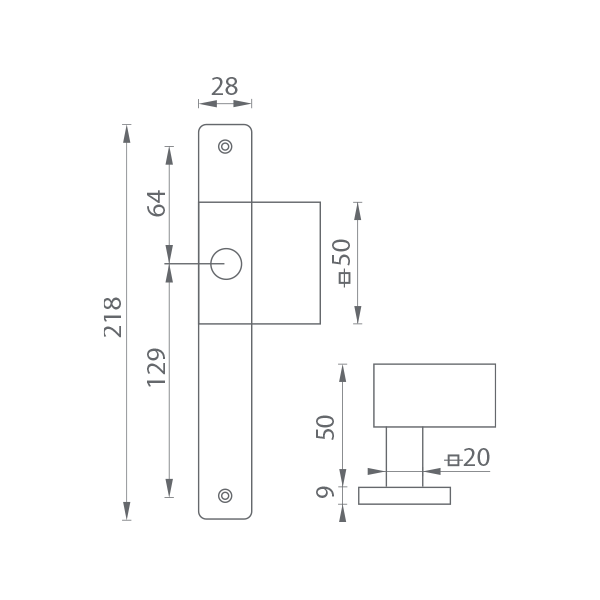 Der solide Offset Türgriff Auf dem quadratischen Schild besteht aus hochwertigem Edelstahl, der als Edelstahl bekannt ist, und wird oberflächen behandelt. Der Griff misst 50 mm x 50 mm und der Quadratschild misst 28 mm x 218 mm. Griff für Griffe Quadra - SH im Griff/Griff -Design. Zusätzliche Ladung für den Griff, der an anderen Griffen am Quadratschild (SH) verwendet wird.