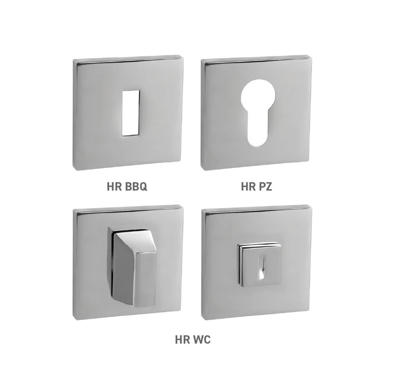 Die quadratische Rosette besteht aus hochwertigem Zamak -Material - einer Zinklegierung und hat eine Oberflächenbehandlung.