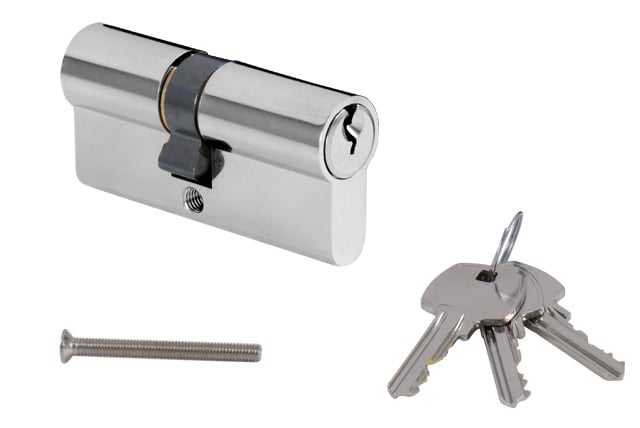 Der konstruktive zylindrische Einsatz besteht aus hochwertigen Materialien - Aluminium und wird oberflächen behandelt. Es ist der am häufigsten verwendete Einsatztyp für die Verriegelung von Türen und ermöglicht es, dass der Schlüssel von innen und außerhalb der Tür eingefügt wird.