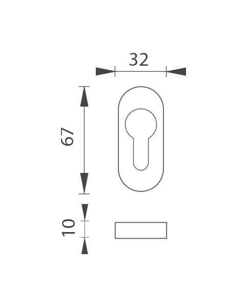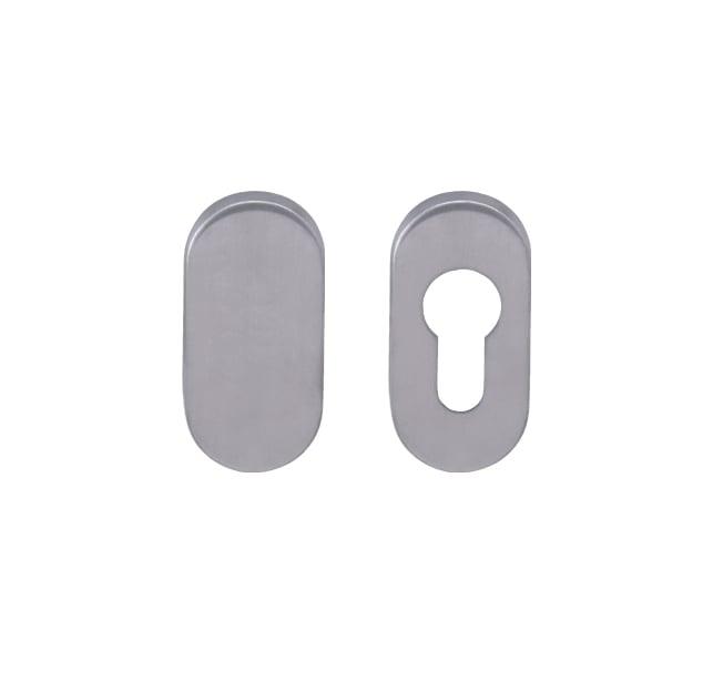 Die schmale ovale Rosette besteht aus hochwertigem rostfreiem Stahl, der als Edelstahl bekannt ist, und wird oberflächen behandelt. Die Rosette hat Abmessungen von 32 mm x 67 mm, eine Dicke von 10 mm und ein Loch für einen Zylindereinsatz (PZ) oder eine Rosette ohne Loch, den sogenannten Stecker. Das Paket enthält 2 Stücke Rosetten (Paar).