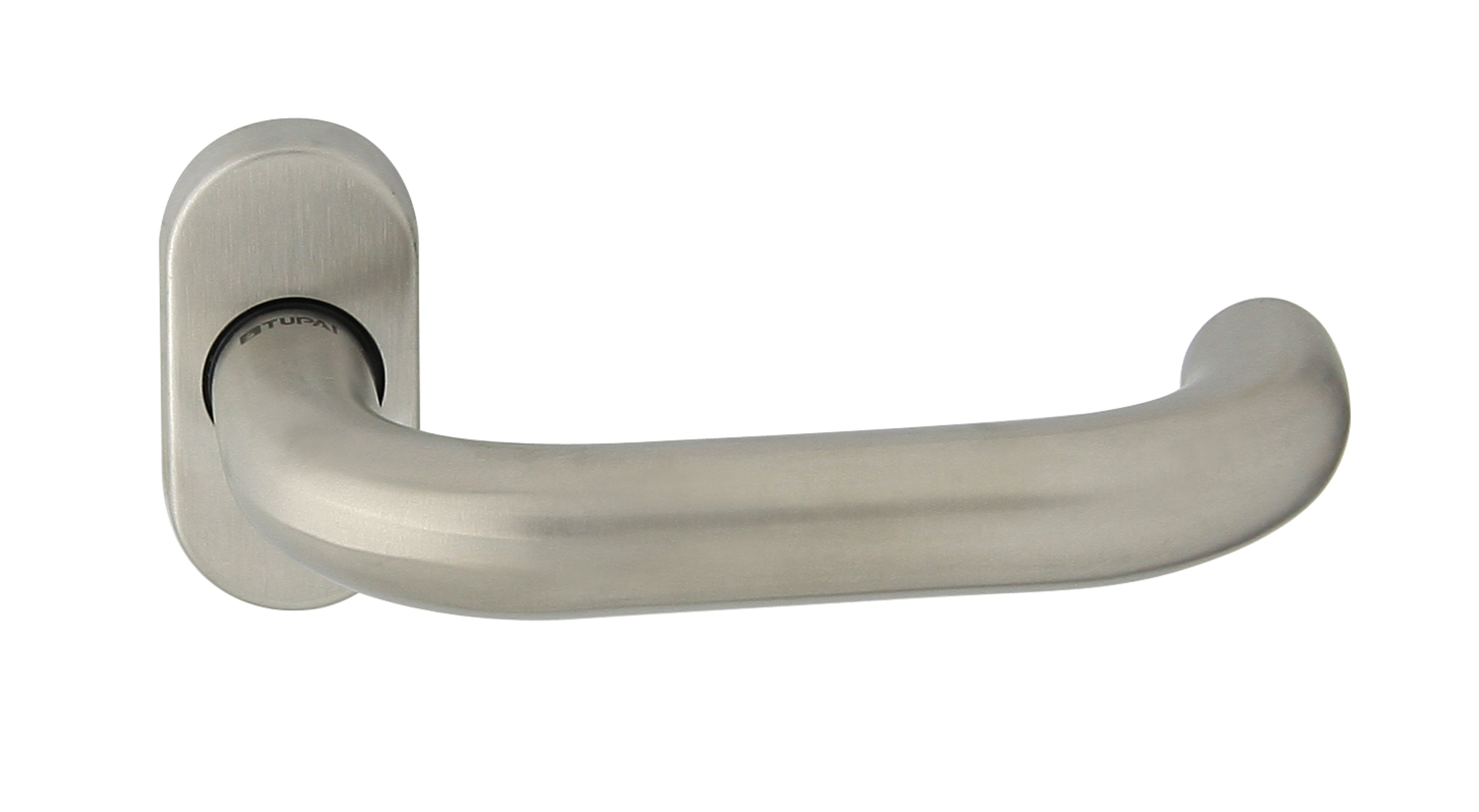 Richter tschechisch rk.f.1968.n Edelstahl-Türgriff auf ovaler Rosette