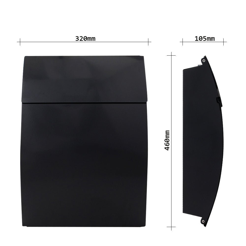 Der Harrow -Mailbox mit außergewöhnlicher runder Form und modernes Erscheinungsbild besteht aus hochwertigem Material - Edelstahl und ist gegen Korrosion und unerwünschte Wetterbedingungen beständig. Der vordere Wurf ist mit einem Baldachin bedeckt und ist auch ideal für Formate, die größer als A4 sind. Sie können die Post leicht dank der großen Haustür abholen, die nach unten schwingt. Das Paket beinhaltet auch das Befestigungsmaterial, mit dem Sie die Box einfach durch die Löcher auf der Rückseite an der Wand reparieren können.