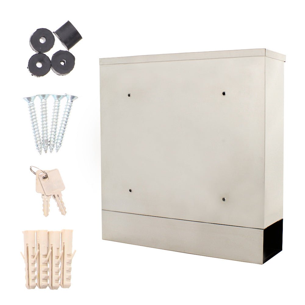 Der Postbox mit Hochhaus -Set II besteht aus hochwertigem Material - Edelstahl. Die vordere Öffnung ist durch eine Abdeckung von Schmutz und Regenwasser geschützt. Sie können die Post dank der großen Haustür, die nach unten schwingt, problemlos herausnehmen. Die Box ist unten mit einer Box für Zeitungen und Zeitschriften ergänzt. Der Vorteil der Zwischenablage besteht darin, dass sie in Berichte zusammengestellt werden kann. Das Paket enthält auch das Befestigungsmaterial für die Wand.