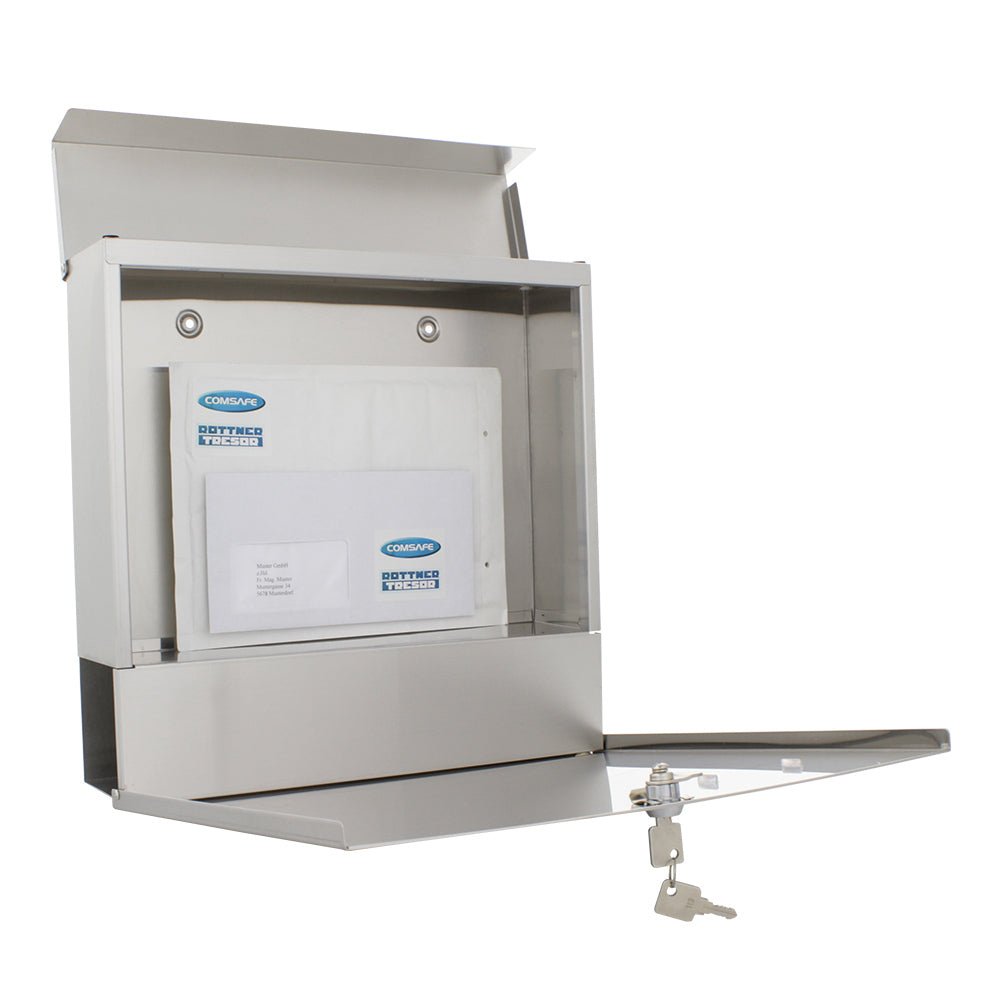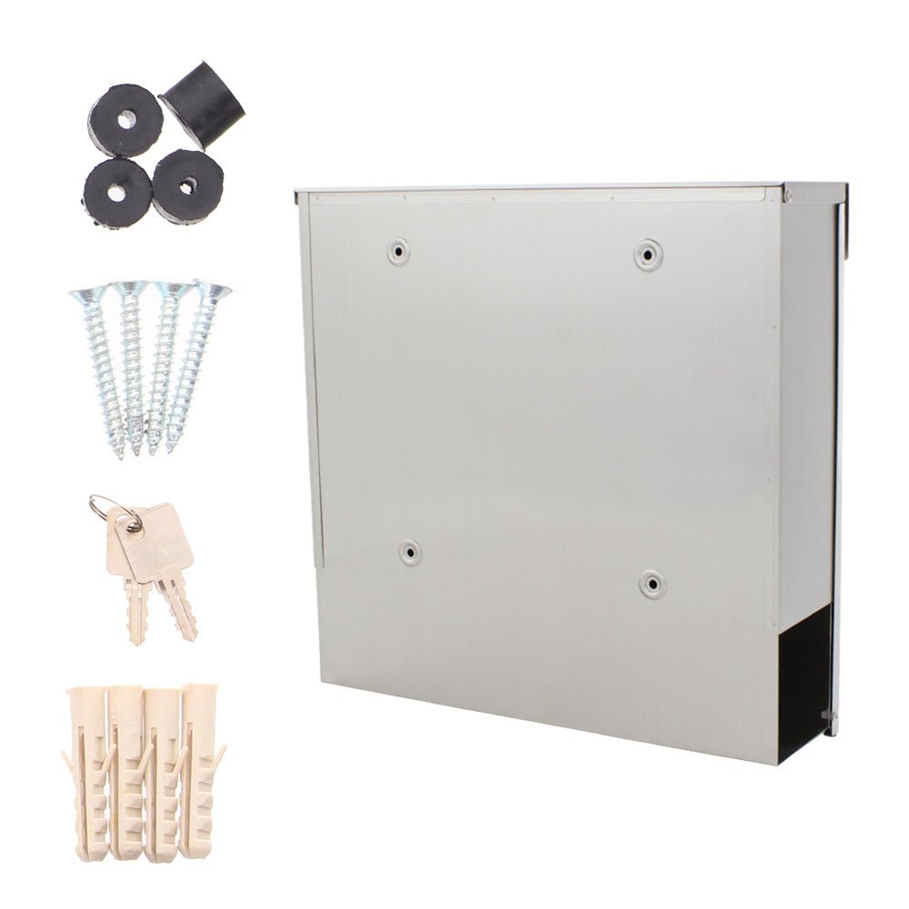Der moderne Kensington Mailbox besteht aus hochwertigem Material - Edelstahl. Es ist resistent gegen unerwünschte Wetterbedingungen. Der obere Wurf wird durch einen Baldachin aus Regenwasser und Schmutz geschützt. Sie können die Post leicht dank der großen Haustür abholen, die nach unten schwingt. Im oberen rechten Teil der Box befindet sich Platz für ein Namensschild. Es gibt eine diskret platzierte Schachtel für Zeitungen und Zeitschriften unter dem Mailbox.æ’ † â € â € â € â € â € â € â € â € â € â â € â â € â € â â € ž â € â € ž â € ž † “ Æ'... "€ â € ž" â € â " Das Paket beinhaltet auch das Fixieren Material für die Wand.