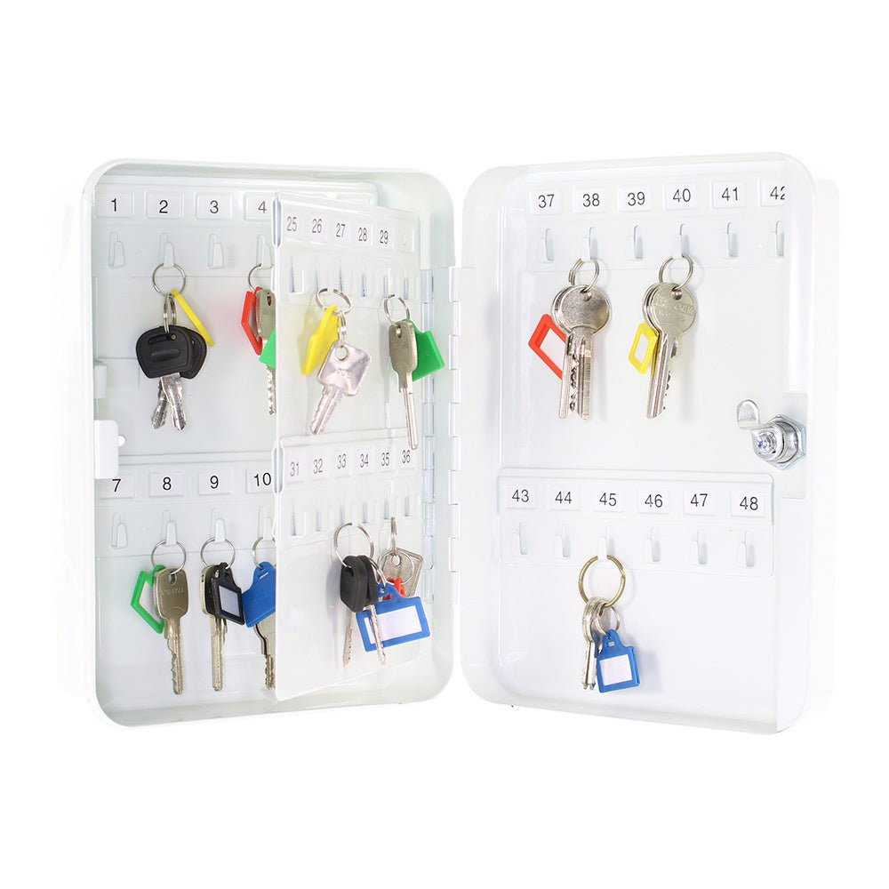 Mit dem TS48 -Schlüsselfeld können Sie einen Überblick über alle Ihre Schlüssel führen. Das Kabinett eignet sich für Unternehmen, aber auch für Haushalte. Die Haken sind fest montiert und 48 Schlüssel können an ihnen aufgehängt werden. Das Paket enthält das erforderliche Verankerungsmaterial für die Wandmontage.