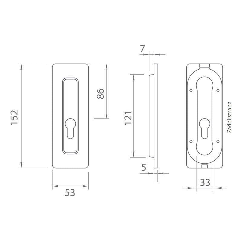 Die quadratische Hülle mit einem PZ -Loch für den Einsatz für die Schiebetür besteht aus hochwertigem Material Messing/Zamak - Zinklegierung und hat eine Oberflächenbehandlung.