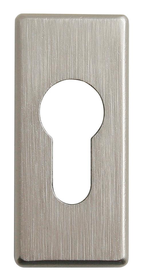 Die schmale quadratische Rosette besteht aus Aluminium und hat eine Oberflächenbehandlung. Die Rosette ist 31 mm x 68 mm, 12 mm dick und hat ein Loch für einen Zylindereinsatz (PZ). Das Paket enthält 2 Stücke Rosetten (Paar)